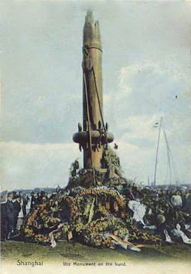 Znalazłem też niewątpliwy wzorzec tego zminiaturyzowanego pomnika, a mianowicie zdjęcia pewnego słynnego i propagowanego w owych latach monumentu z Szanghaju, który upamiętniał niemieckie straty na tamtejszych morzach (75-ciu marynarzy z gdańskiej kanonierki SMS „Iltis”).